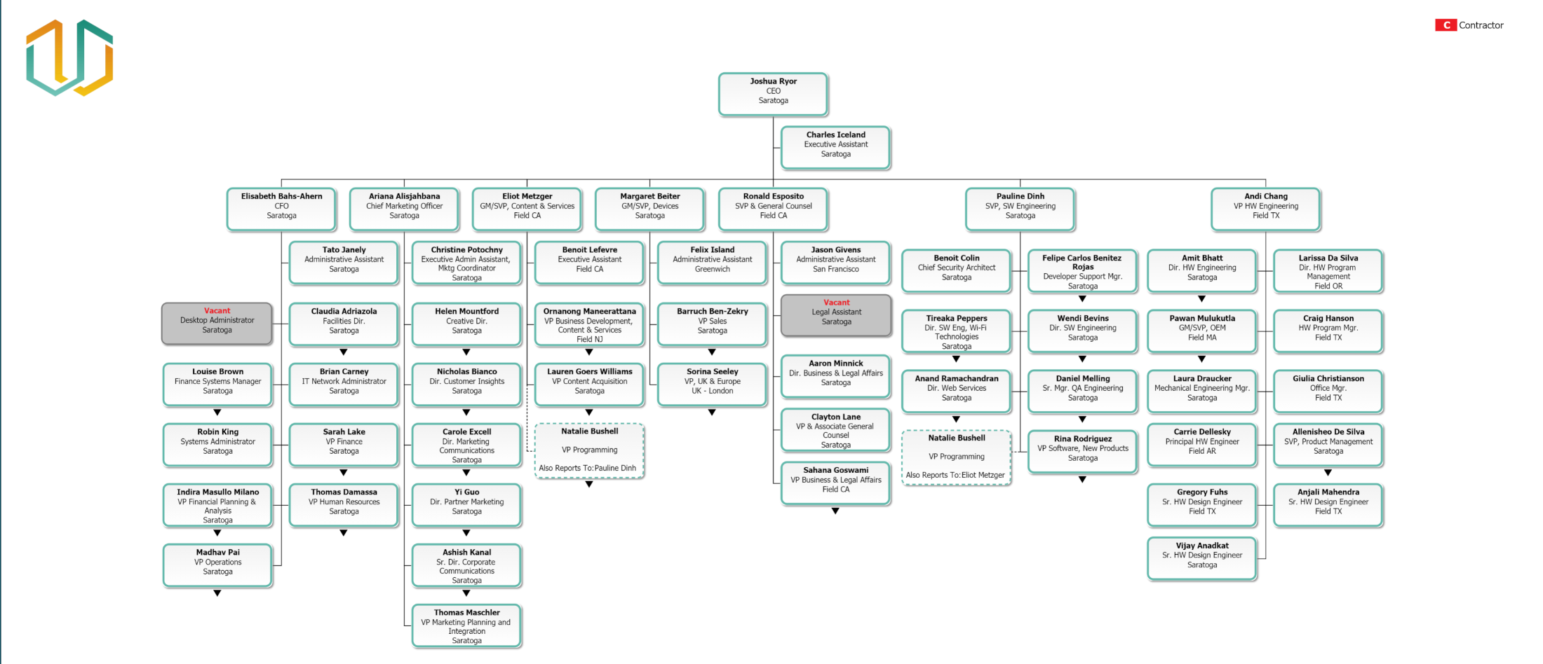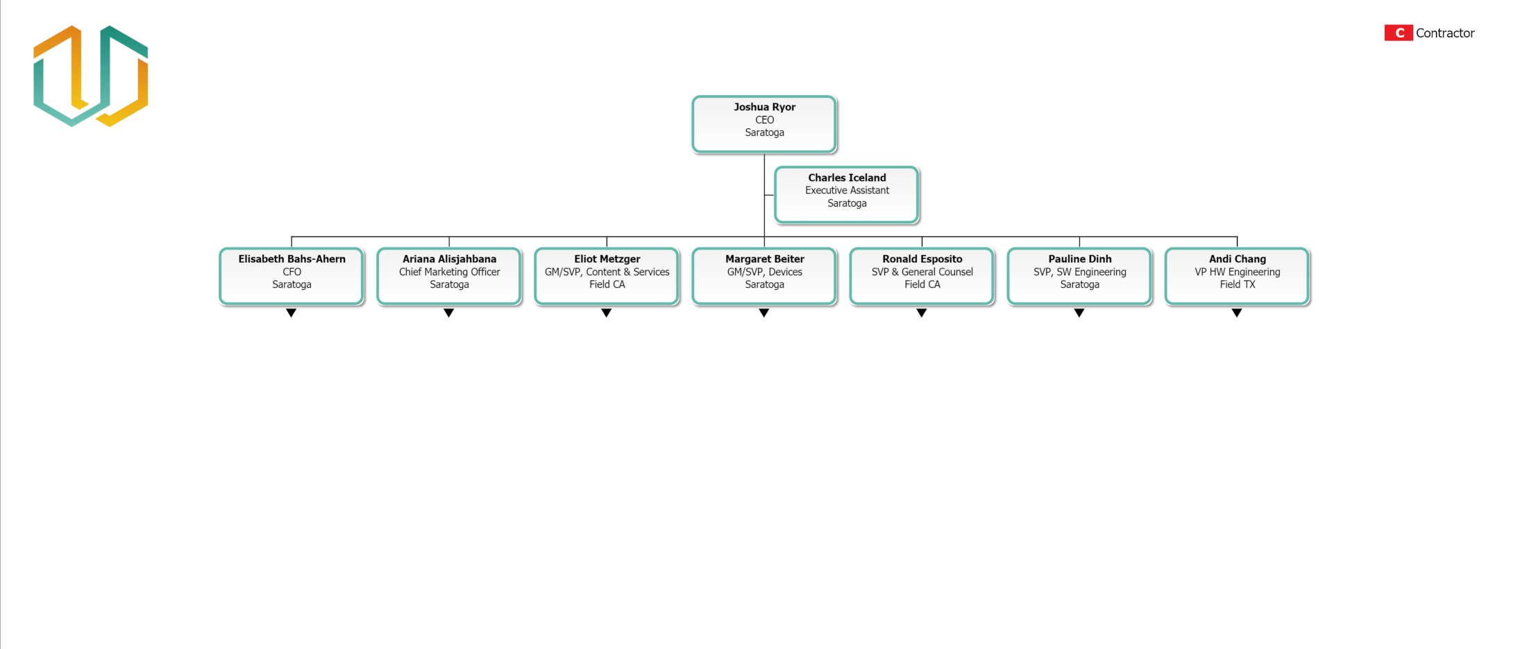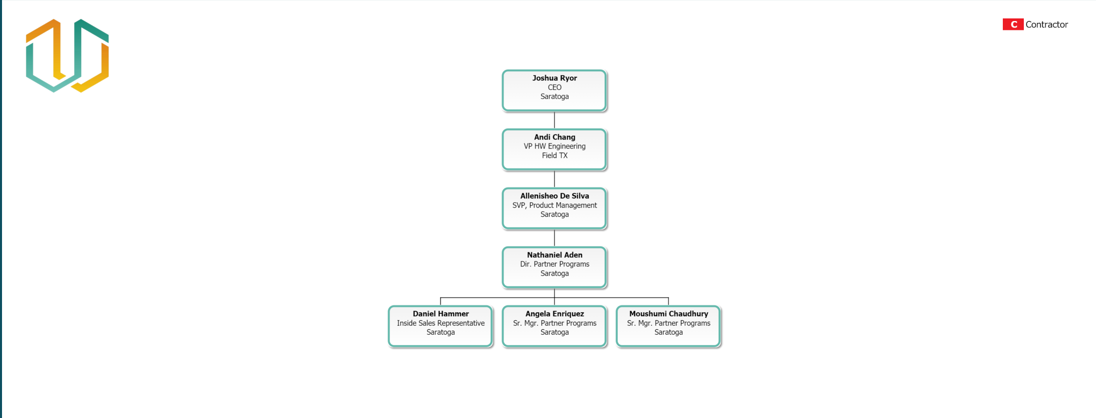 Chain of Command allows users to conveniently view the direct reporting line of the company from any subchart. When enabled, users can choose to display between 1, 2, 3, or all levels of direct superior reports above the top box of the current subchart.